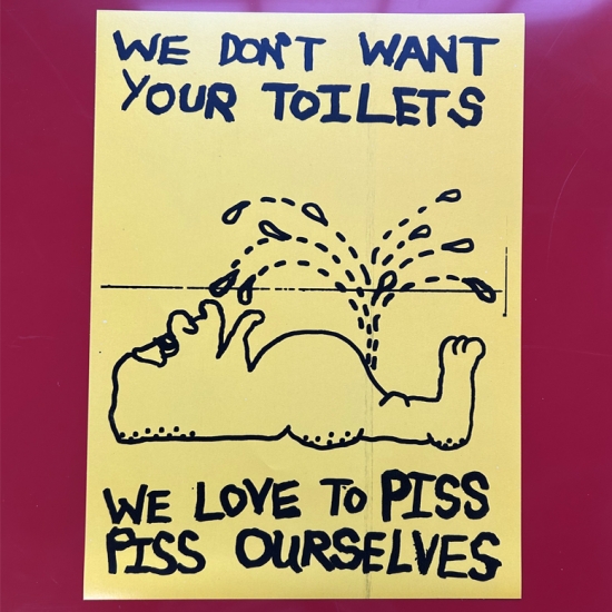 "We Love To Piss Ourselves" Mono photocopy on signboard. A3. 2024.