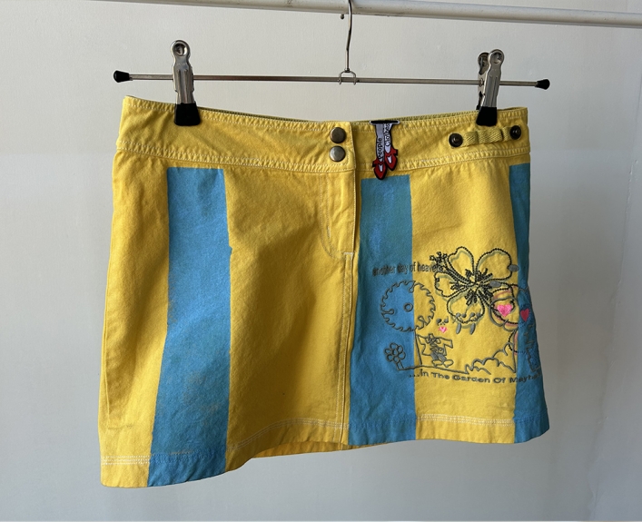 Handpainted, dyed and digitally embroidered deadstock surfing skirt